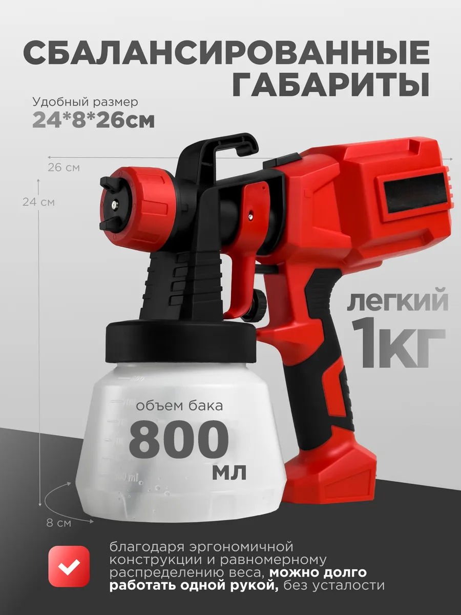 Аккумуляторный краскопульт совместим с различными типами красок, что делает его универсальным инструментом для решения разнообразных задач. Эргономичный дизайн и легкий вес обеспечивают комфорт при длительной работе, даже если у вас ограниченный опыт в покраске.